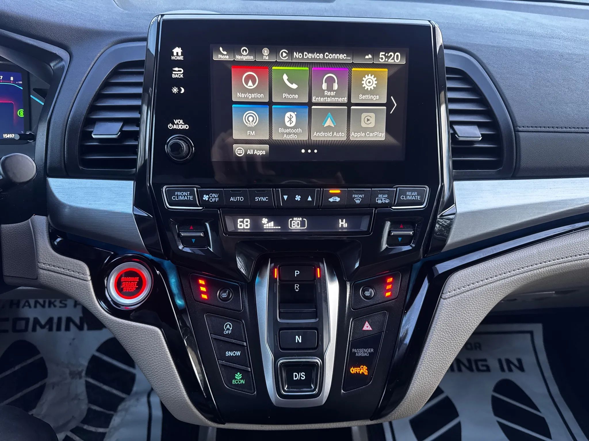 Blind Spot Info System, Hill Start Assist, Traction Control, Stability Control, ABS (4-Wheel), Alarm System, Keyless Entry, Push Button Start, Air Conditioning, Air Conditioning (Rear), Power Windows, Power Door Locks, Adaptive Cruise Control, Power Tailgate Release, Power Steering, Tilt & Telescoping Wheel, AM/FM/HD Radio, CD/MP3 (Single Disc), SiriusXM Satellite, Navigation System, DVD System, Bluetooth Wireless, HondaLink, F&R Parking Sensors, Multi-View Camera, Dual Air Bags, Side Air Bags, Head Curtain Air Bags, Knee Air Bags, Lane Departure Warning System, Heated Seats, Dual Power Seats, Leather, Third Row Seat, Moon Roof, Daytime Running Lights, LED Headlamps, Fog Lights, Power Sliding Doors, Roof Spoiler, Alloy Wheels